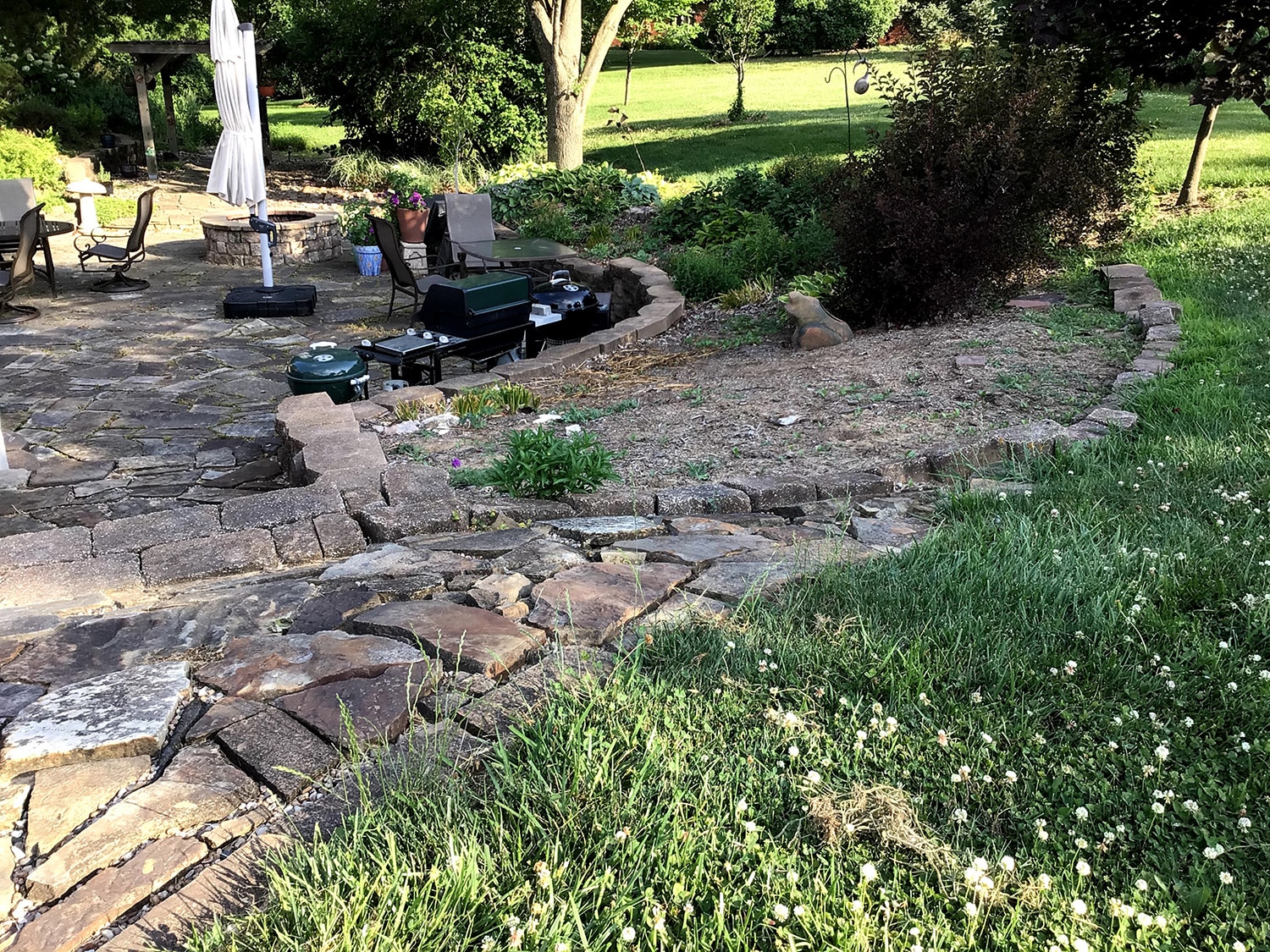 Old stone was burgeoning out of shape, walls and patio getting more misshapen every year.