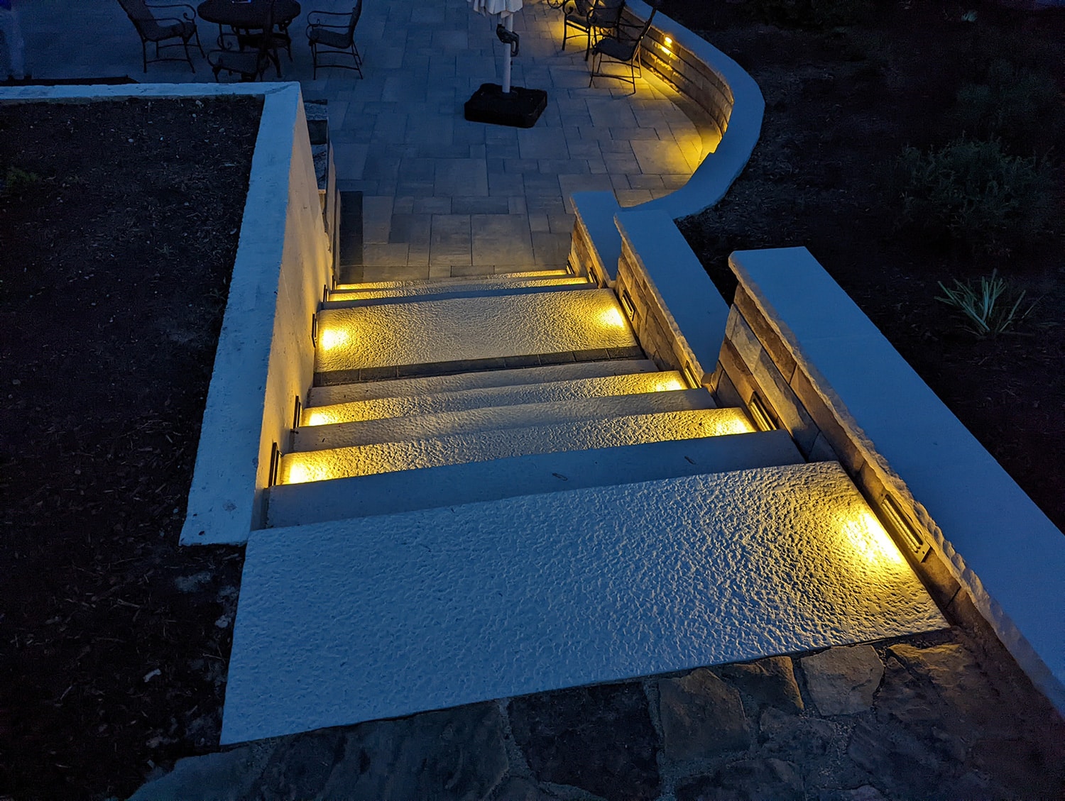 The resulting space was effortlessly clean, stylish, and richly lit at night for maximized entertaining, delighting our client and relieving their stormwater concerns all at once.